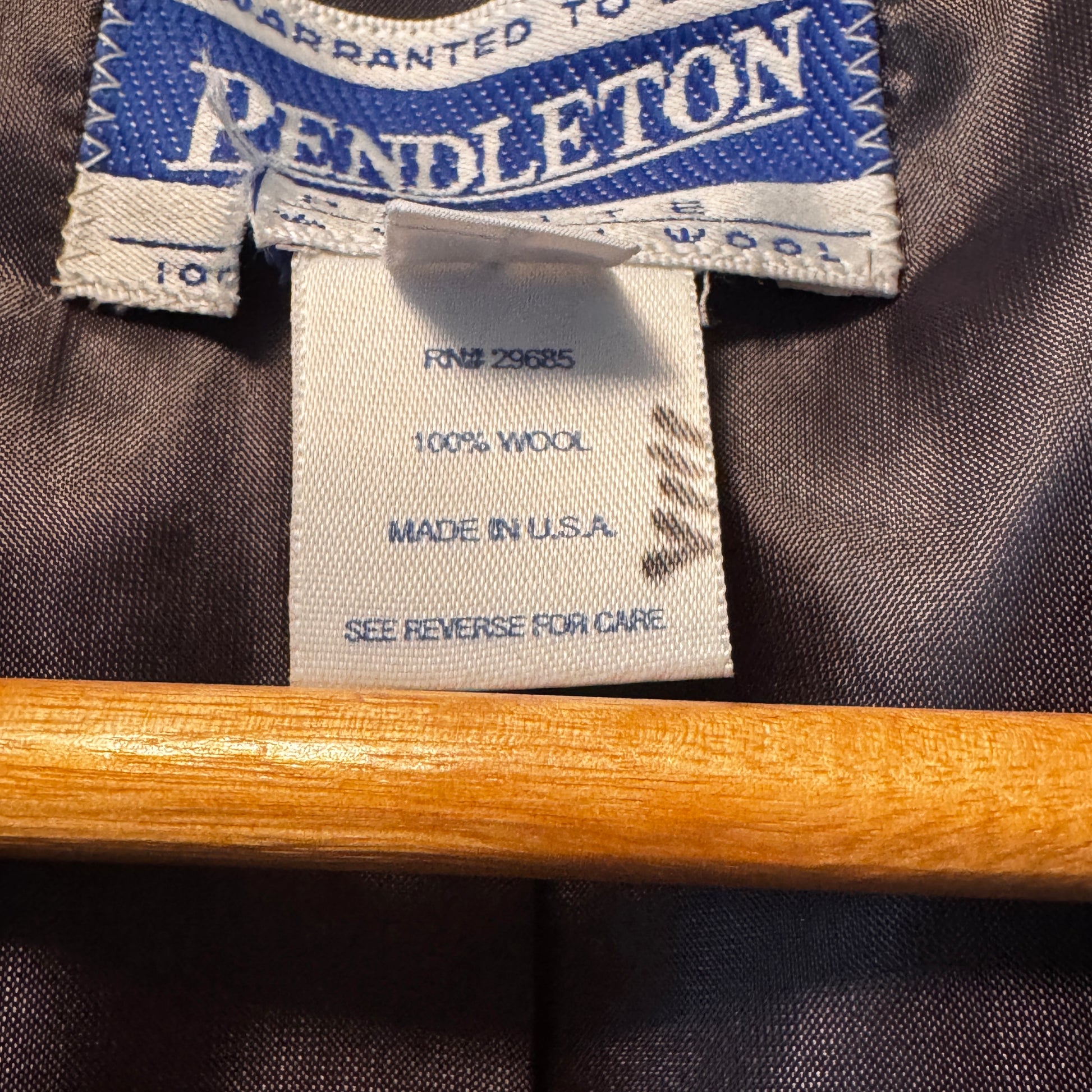 A beautifully tailored vintage Pendleton blazer in a rich charcoal gray wool — a timeless, structured wardrobe staple from the late 80s to early 90s. Made in the USA from 100% virgin wool, fully lined, and crafted with Pendleton’s signature quality.