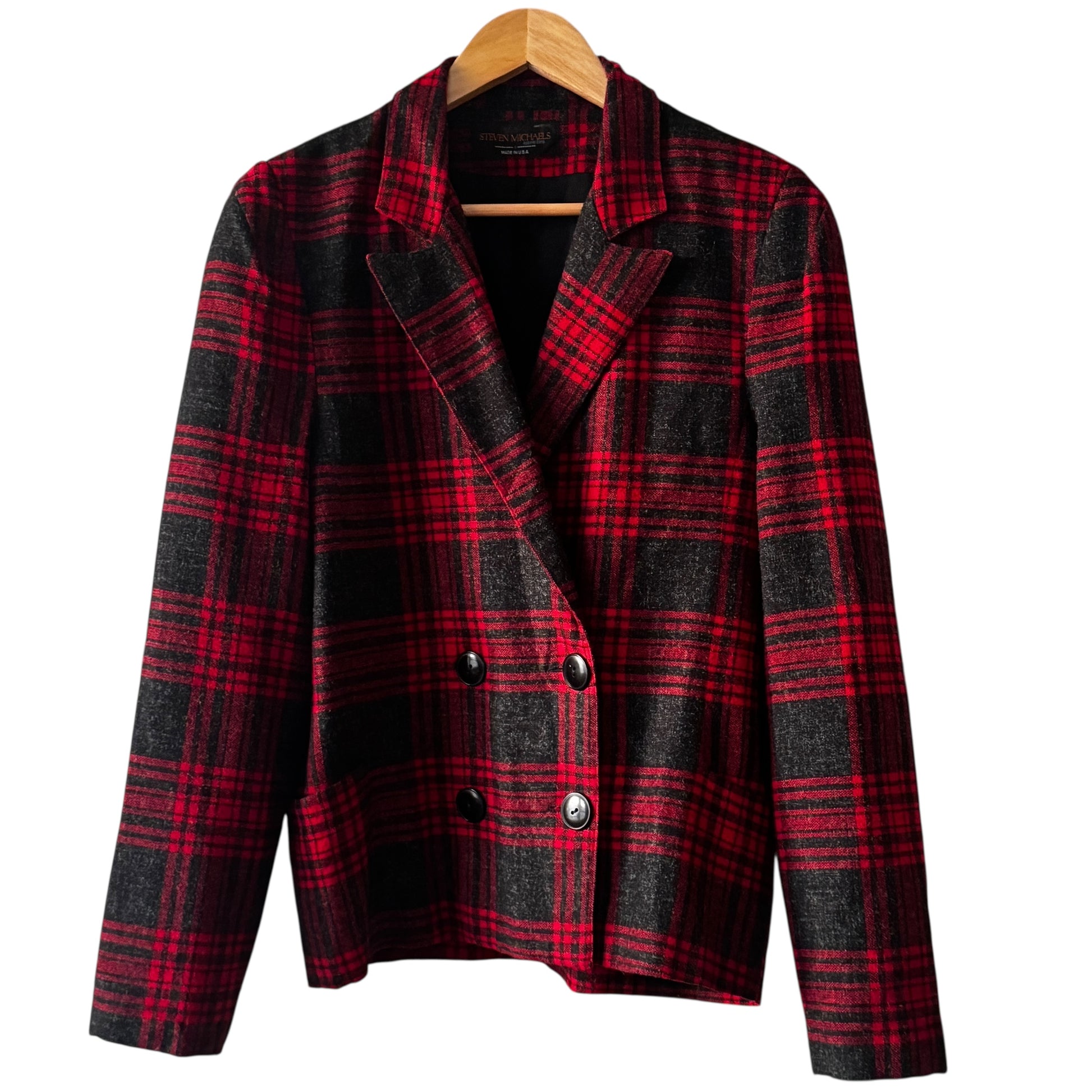 Vintage Steven Michaels Red Plaid Wool Blend Women’s Blazer Made in USA Size Medium